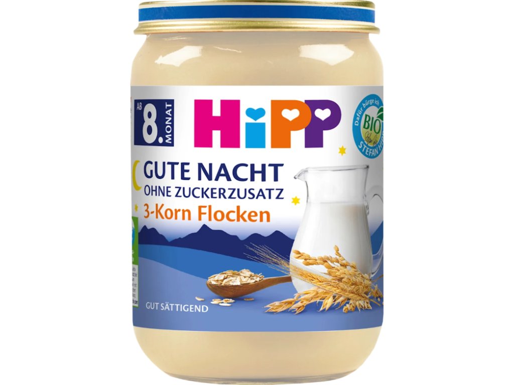 kompletní večerní kaše vyrobená z kojeneckého mléka a cereálií. Výrobky jsou obzvláště syté, neobsahují žádný přidaný cukr (složky cukr přirozeně obsahují) a jsou proto ideálním jídlem před spaním. Od 6. měsíce.